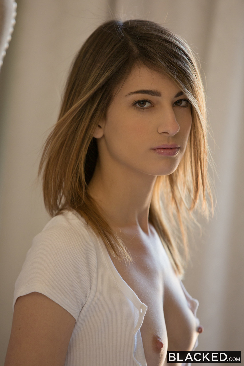 Slender babe Nina Sphinx strips to show her amazing tits ...