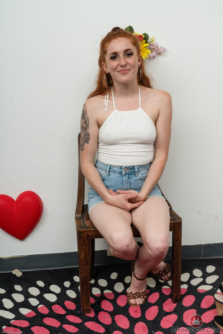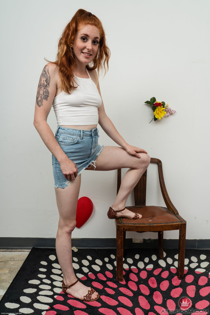 Skinny ginger Scarlet Skies shows her puffy muff & tight ...