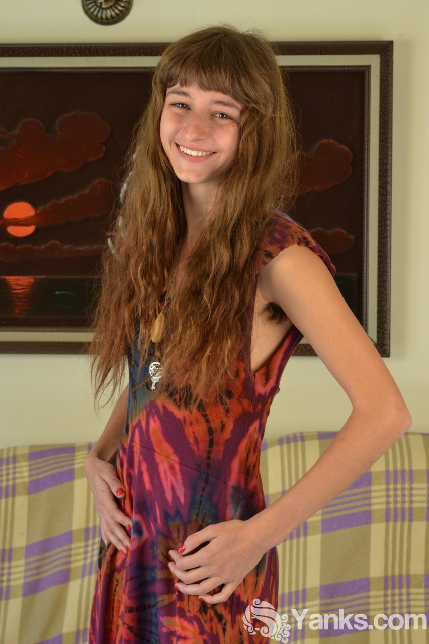 Skinny ginger Scarlet Skies shows her puffy muff & tight ...