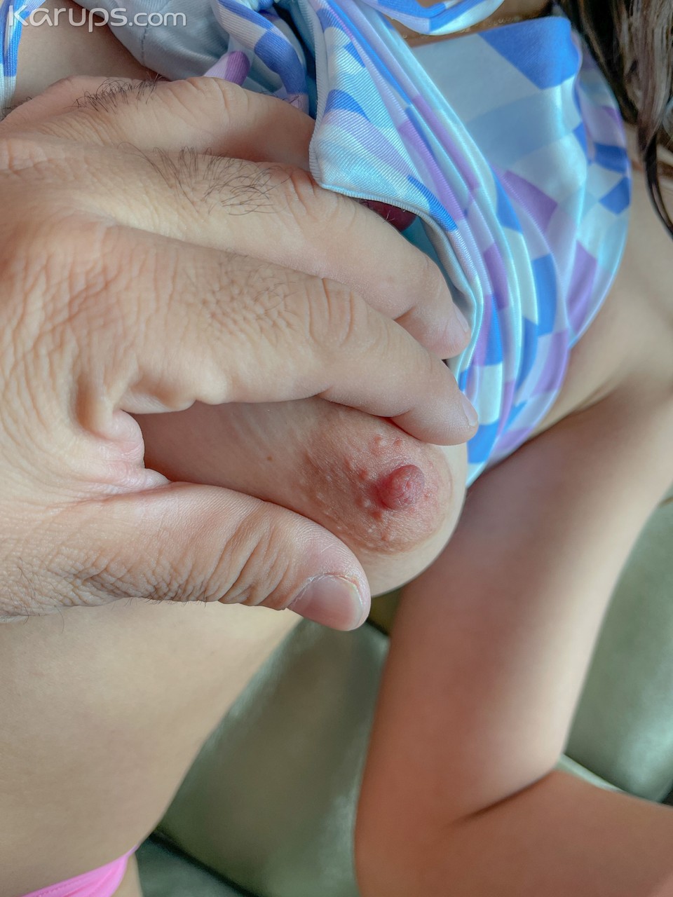 Curly-haired teen amateur Amber Summer gets her tits fondled during a POV fuck
