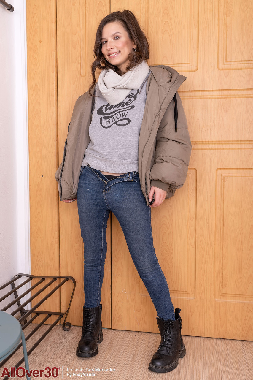 Cute amateur MILF Tais Mercedez strips naked & flaunts her fuzzy pussy