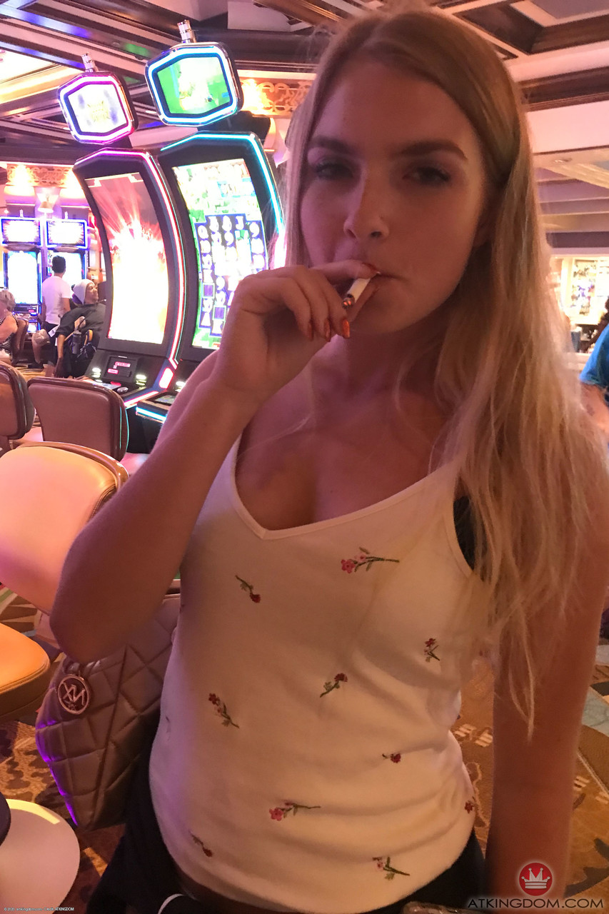 Slender blonde babe Hannah Hawthorne giving arousing views of her meaty pussy