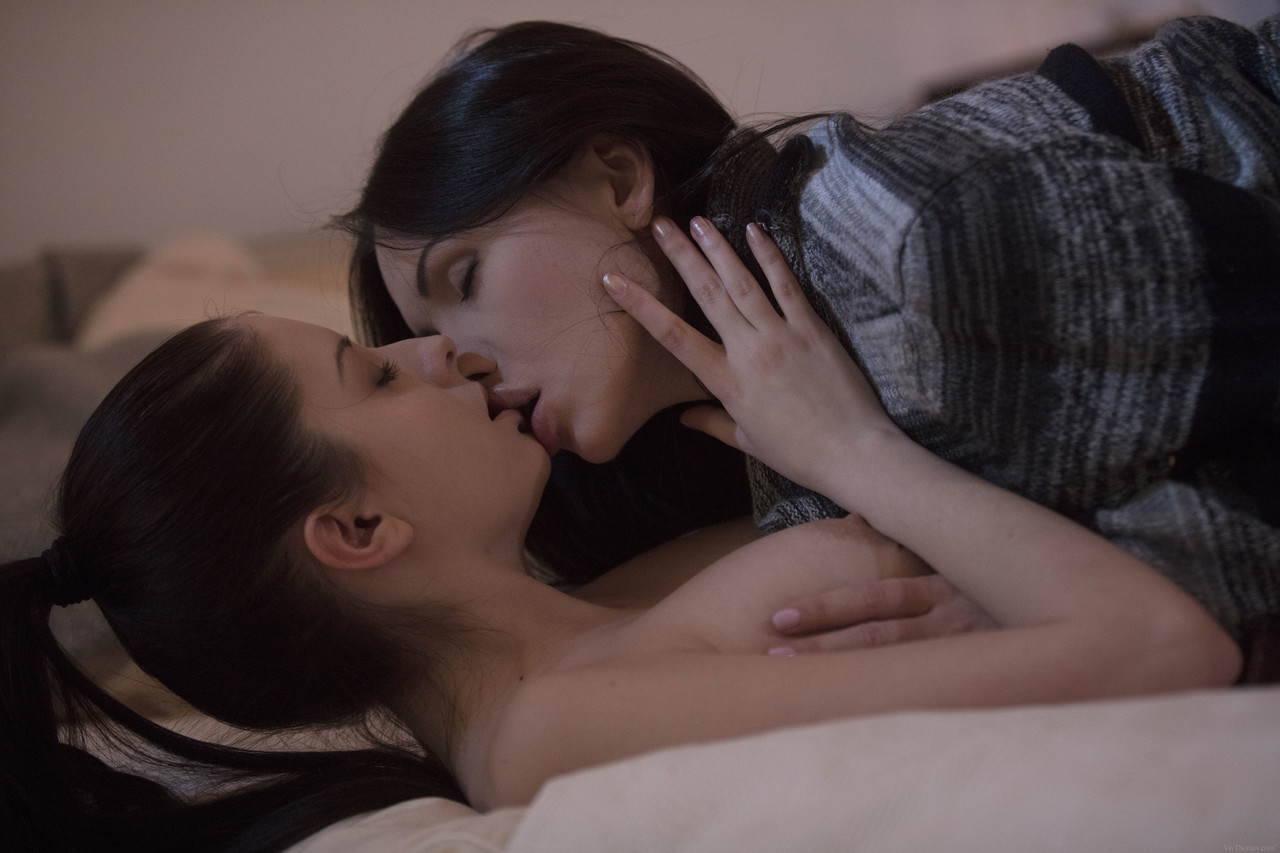 Euro lesbians Rebecca Volpetti & Sasha Rose spend a romantic evening fucking